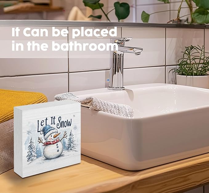 Let It Snow Sign, Christmas Snowman Wooden Box Sign, Farmhouse Winter Wood Signs For Home Office Desk Shelf Table Decor, Snowman Christmas Decorations, Winter Home Decor, 5x5 Inch