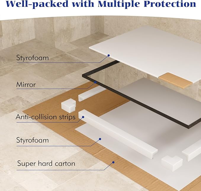 - Safety Glass: Feel secure with tempered, shatterproof glass reinforced by an anti-shatter film; this bathroom vanity mirror is designed to withstand impacts, eliminating worries about breakage in busy households.