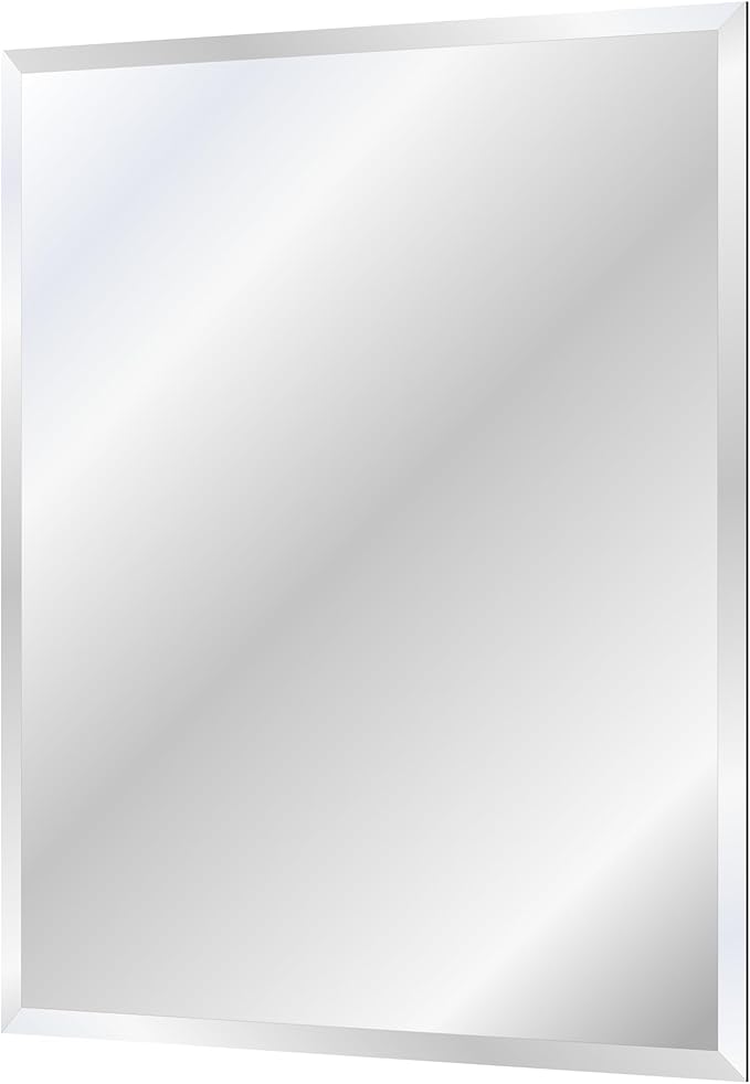 Rectangle Bevelled Frameless Mirror - Wall Mirror 30โ x 36โ, Shatterproof Modern Bathroom Mirror for Gym, Bathroom Vanity, Entryways with Bevelled Edge, Horizontally or Vertically