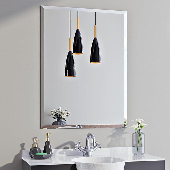 - ๐๐ฎ๐ซ๐๐๐ฅ๐ & ๐๐ฅ๐๐๐ค: Made from durable, high-quality glass our frameless mirror ensures a clear reflection with no frame to distract the eye. This rectangular bathroom mirror is a perfect fit, whether itโs your bathroom, or entryway. Our beveled bathroom mirror is super easy to blend into any room. Plus, with its sturdy design and timeless look, itโs sure to stand out and last!