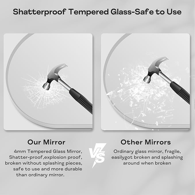 - High-Definition mirror: The silver bathroom vanity mirror adopts high-definition imaging technology, which is as clear as crystal, ensuring that the imaging at all angles and distances will not be deformed and blurred, showing its true beauty. And the arched bathroom mirror uses 4MM Tempered Glass, can effectively prevent damage during transportation