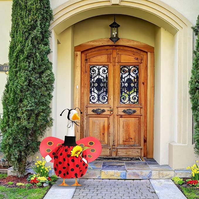 - Ideal Size Fit for Standard Lawn Geese: our spring ladybug goose clothes are designed to fit most standard lawn geese; Designed to dress about 23 inches gooses, our outfits provide a stylish yet ideal fit, enhancing your outdoor goose statuary's charm; Expect an intriguing and delightful result that will not be overlooked