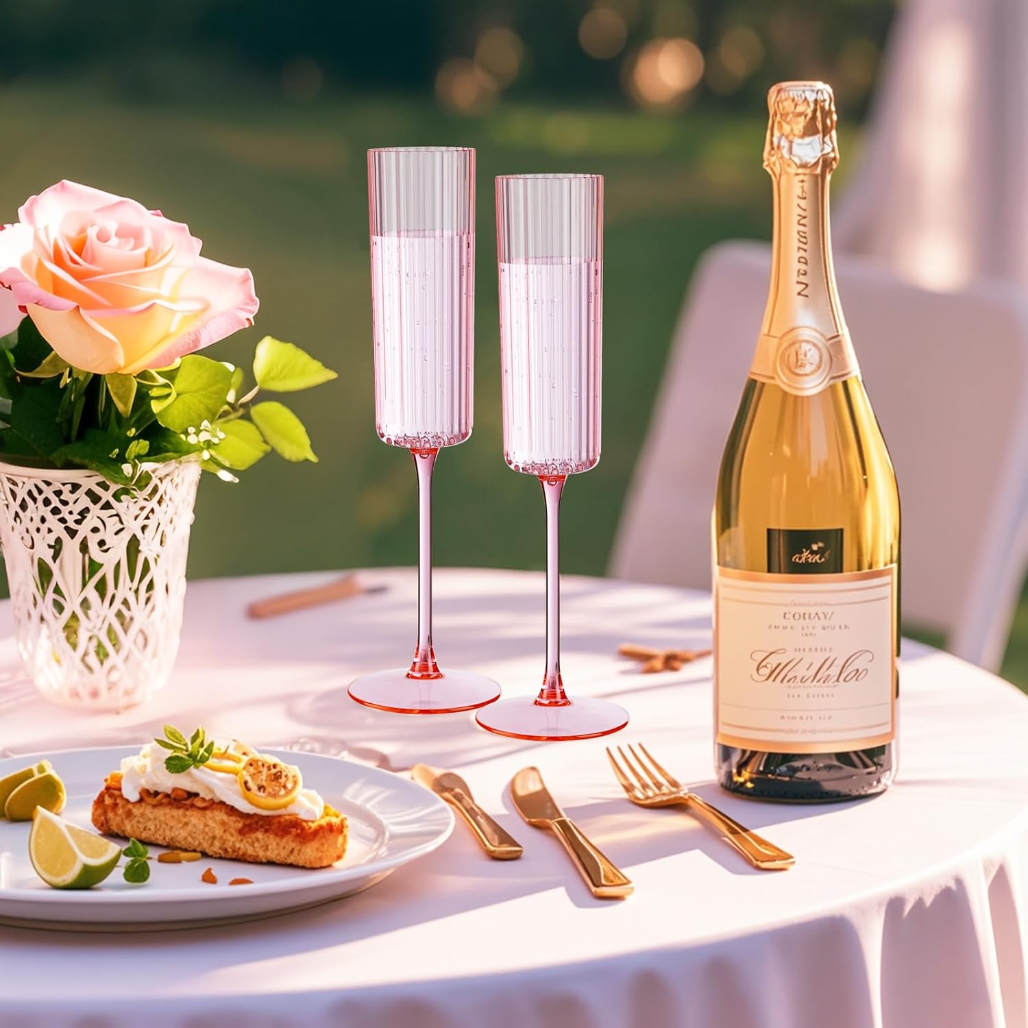 - Pop Pour Party & Shatterproof Luxury: The unique vertical ribbed design of the cup cleverly imitates the texture of crystal glassware. Under the refraction of light, ribbed champagne glasses presents charming light and shadow effects, adding an elegant style to ordinary drinks. At the same time, vintage plastic champagne flutes property allows you to use it without worrying about damage risks in complex outdoor environments.