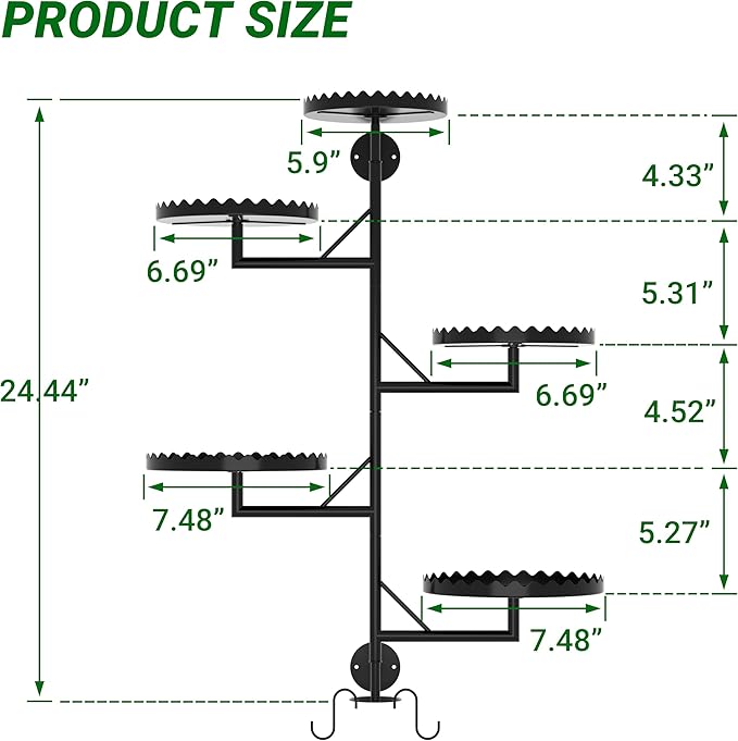 - 【Easy to Set Up】: The plant stand is quick and easy to assemble using screws, requiring just a screwdriver. Plus, it includes two extra hooks, allowing you to hang small plant pots or decorations, helping you maximize space and keep everything organized.