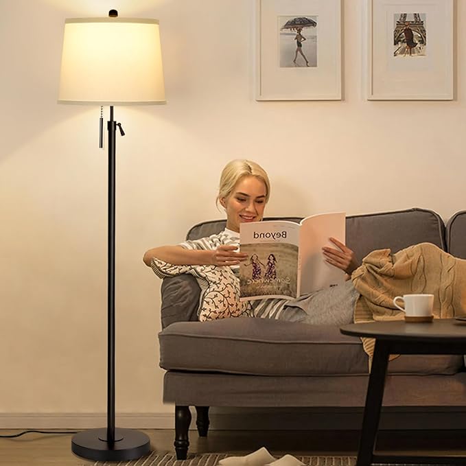 - Adjustable Height Modern Floor Lamp: This tall standing lamp can be adjusted between 55-65" to adapt to the best lighting in any situation, meeting the needs of different age groups, such as children, adults and the elderly. With the most flexible adjustable height pole, this black floor lamps illuminate a larger area of your space, whether at home or in the office, perfect for lighting in different scenarios