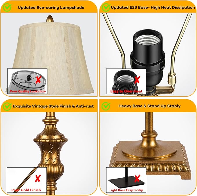- 【Easy Assembly】This traditional standing floor lamp is easy to install without any tools, all you need to do is to screw all the parts of lamp pole together following the instruction(from socket to base), take minutes to get an excellent home improvement