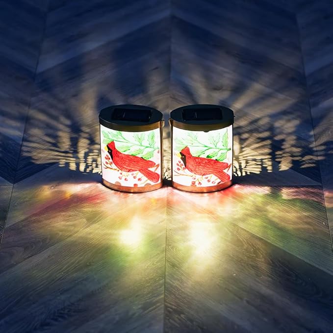 - Package Included: 2 x cardinal outdoor lanterns. The solar outdoor lanterns can create a warm and romantic atmosphere, adding fun to your garden life and attracting your family and friends