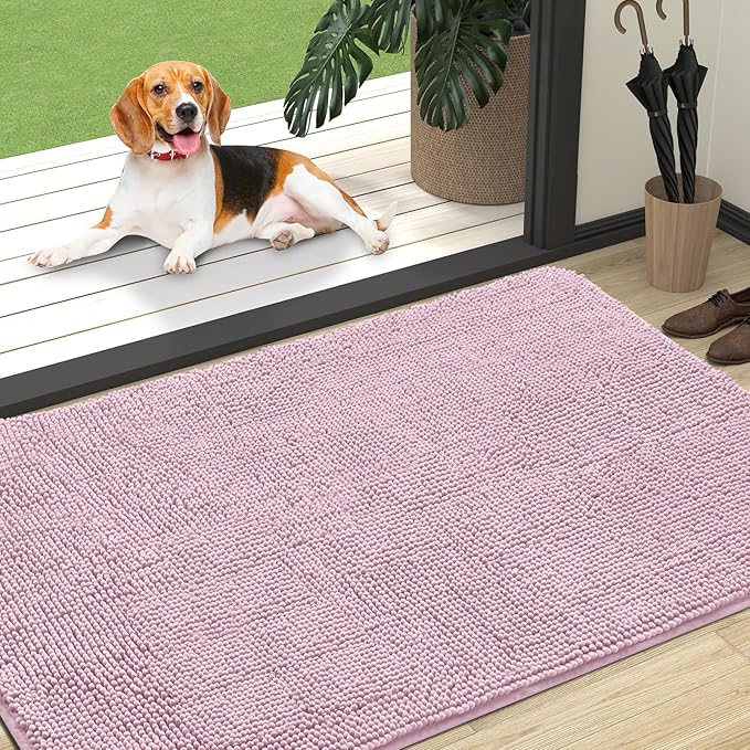 OLANLY Dog Door Mat for Muddy Paws 47x32, Absorbs Moisture and Dirt, Absorbent Non-Slip Washable Doormat, Quick Dry Chenille Mud Mat for Dogs, Entry Indoor Entryway Carpet for Inside Floor, Dusty Rose
