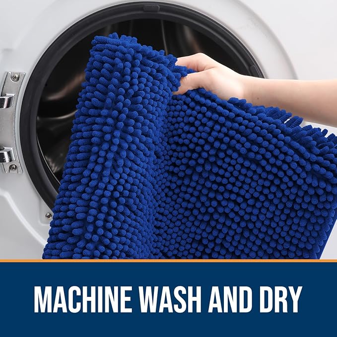 OLANLY Dog Door Mat for Muddy Paws 47x17, Absorbs Moisture and Dirt, Absorbent Non-Slip Washable Doormat, Quick Dry Chenille Mud Mat for Dogs, Entry Indoor Entryway Carpet for Inside Floor, Royal Blue