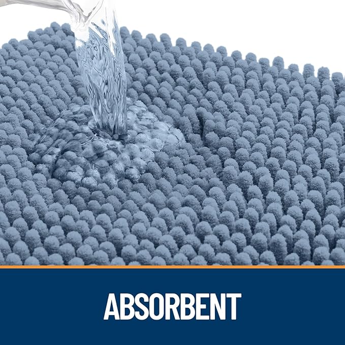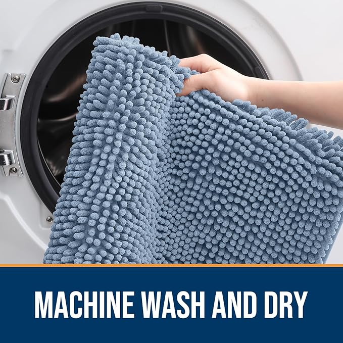 OLANLY Dog Door Mat for Muddy Paws 59x35, Absorbs Moisture and Dirt, Absorbent Non-Slip Washable Doormat, Quick Dry Chenille Mud Mat for Dogs, Entry Indoor Entryway Carpet for Inside Floor, Airy Blue