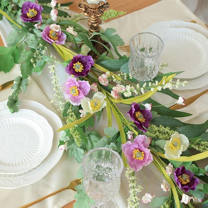 - Ideal Flowers Garland for Decoration - These artificial flower garland can be used for mantle decor, wedding decor, party decor, table centerpieces decor, room decor, wall decor, fireplace decor, spring decor, summer decor, injecting a flower natural aesthetic into the scene.