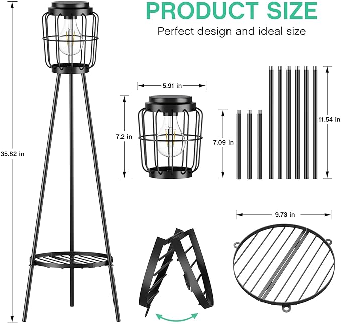- Innovative Solar Street Light: Unlike traditional solar floor lamps, our 36-inch solar street light features a plant stand concept. This innovative design allows you to place your favorite plants or sundries, tools, etc., adding a touch of fresh nature to your outdoor garden, patio, deck.