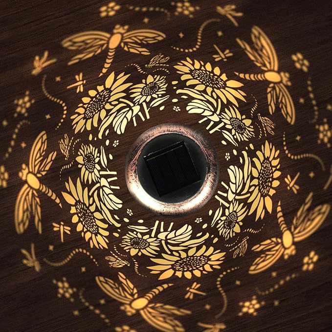 - 【Perfect Gift】 The Dragonfly Sunflower solar lantern can be hung on a tree or placed on a tabletop or the ground. It is the perfect decoration for gardens, yards, porches, paths, walkways, patios, balconies, and decks. It also makes a perfect gift for women on holidays, Valentine’s Day, Mother’s Day, weddings, parties, and birthdays.
