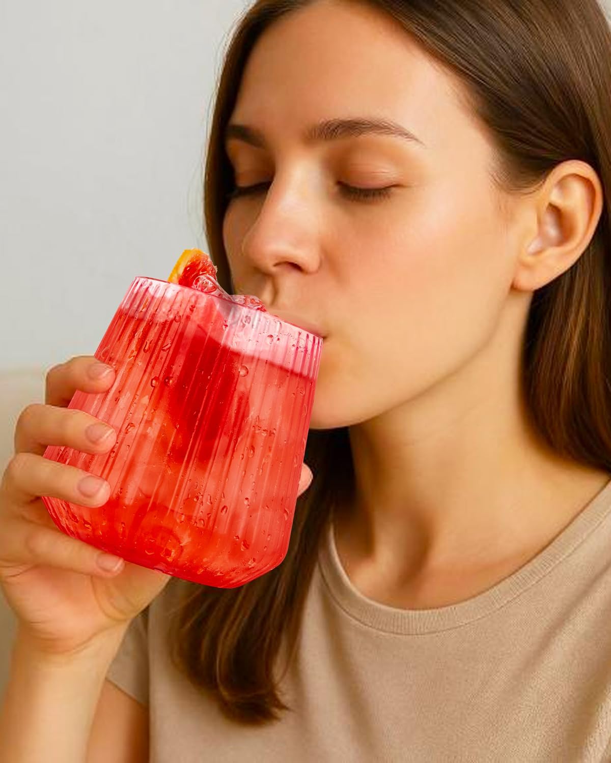 - Ribbed and Stemless Design:Featuring a ribbed and stemless design, these plastic cocktail glasses offer a modern and sleek appearance that complements any occasion. The plastic wine glasses disposable not only provides a comfortable grip and more elegant but also makes them easier to stack and store, saving space. The stemless design also provides better stability, reducing the risk of tipping compared to traditional stemmed cups.