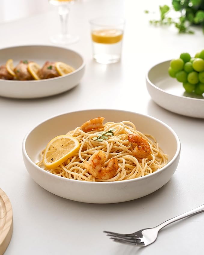 famiware Milkyway 33 oz Bowl Set, Pasta Bowls Set of 6, Salad Bowls Perfect for Your Friend for Housewarming, Thanksgiving, Christmas, Matte White