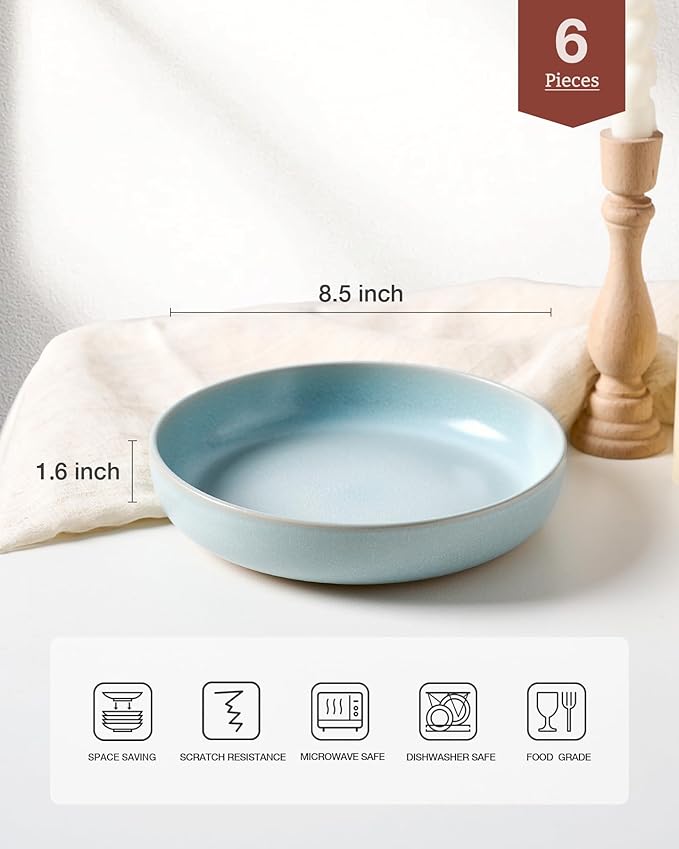 famiware Milkyway 33 oz Bowl Set, Pasta Bowls Set of 6, Salad Bowls Perfect for Your Friend for Housewarming, Thanksgiving, Christmas, Light Blue