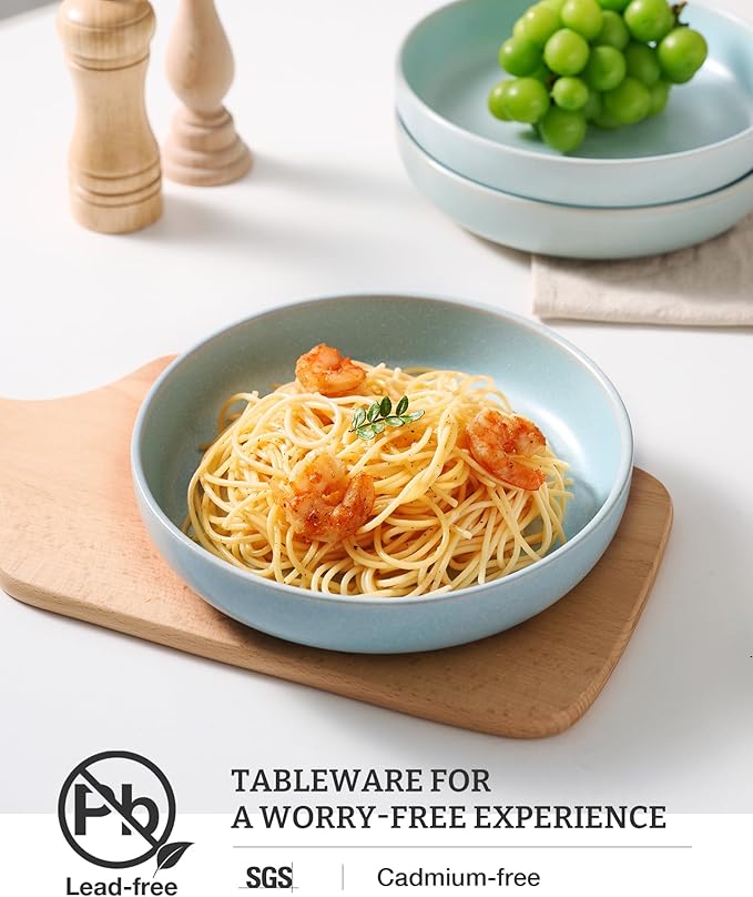 - HANDCRAFTED - Featuring a simple, stylish design, these pasta plates are handcrafted and glazed with a double-reactive glaze for a unique, dreamy color. Shades may vary on the glaze, showcasing the one-of-a-kind beauty of our handcraft