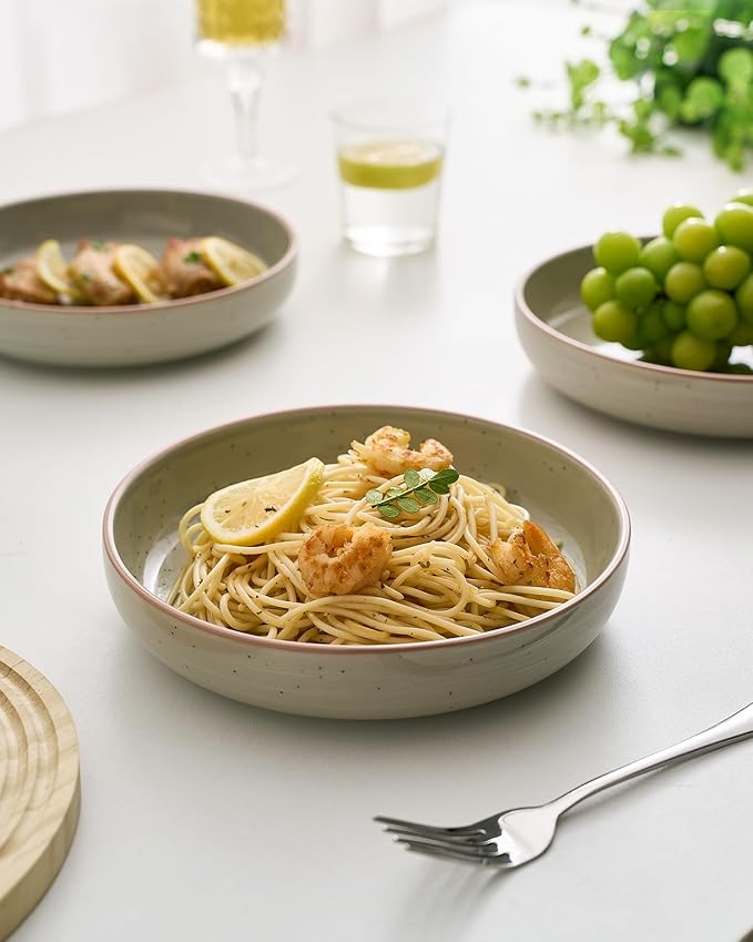 - HANDCRAFTED - Featuring a simple, stylish design, these pasta plates are handcrafted and glazed with a double-reactive glaze for a unique, dreamy color. Shades may vary on the glaze, showcasing the one-of-a-kind beauty of our handcraft