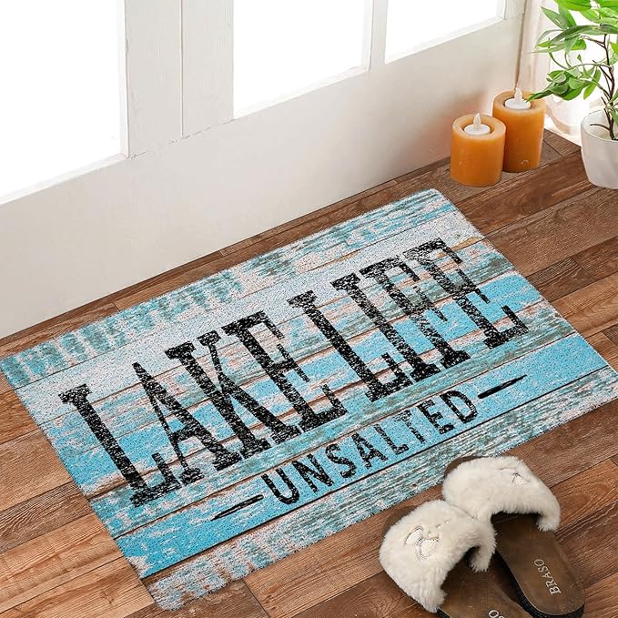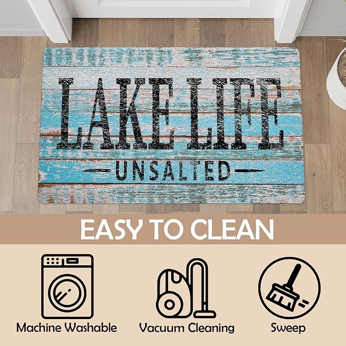 Lake Life Door Mat, Coastal Beachy Lakeside Doormat Welcome Mats for Front Door Porch Outdoor Outside Entrance, Lake House Decor, Ocean Bath Rug for Bathroom, 17x30 Inch