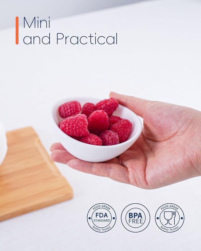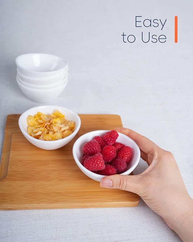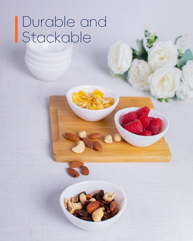 - 3-OZ Dipping Bowls Set of 6: The sinuous edge design, a sophisticated flourish, enhances both celebratory gatherings and everyday dining; Dual - purposed as a dipping sauce or snack bowl, it marries aesthetic appeal with practical elegance