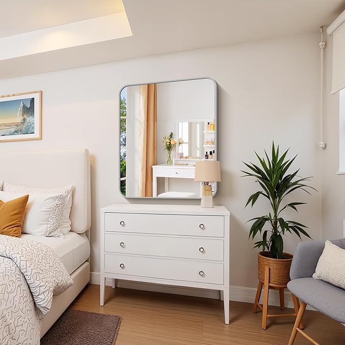 FORBATH 30x36 Inch Silver Bathroom Mirror for Over Sink, Large Rectangular Wall Mirror with Metal Frame, Rounded Corners for Bathroom, Bedroom, Entryway Decor (Horizontal or Vertical)