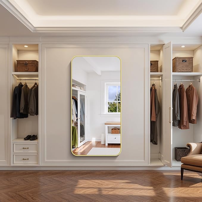 - Elegant Rounded Corners & Premium Safety: Featuring a sleek gold metal frame with softly contoured rounded corners. This sophisticated design combines modern elegance with enhanced safety, eliminating sharp edges while adding a luxe minimalist finish. The rich black frame elevates any decor, creating a visually expansive effect that brightens spaces and amplifies the sense of openness.