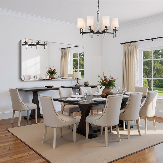 - Elegant Rounded Corners & Premium Safety: Featuring a sleek silver metal frame with softly contoured rounded corners. This sophisticated design combines modern elegance with enhanced safety, eliminating sharp edges while adding a luxe minimalist finish. The rich black frame elevates any decor, creating a visually expansive effect that brightens spaces and amplifies the sense of openness.