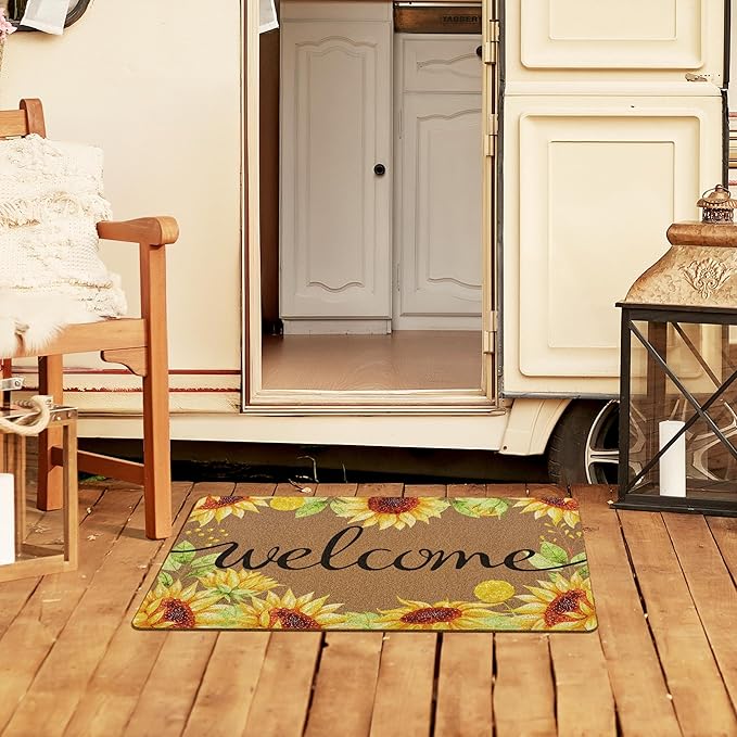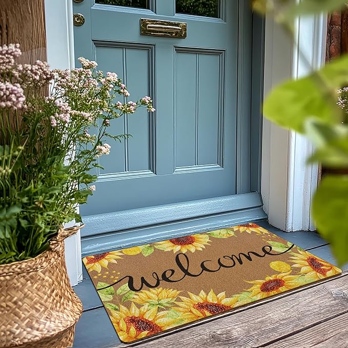 Sunflower Welcome Door Mat, Summer Sunflower Doormat, Sunshine Welcome Front Door Mat Outside Indoor Entrance, Botanical Artificial Coir Doormats Rugs for Patio Entry Home Decor, 30x17in