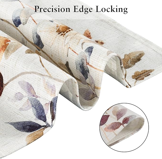 LilyCat Linen Fabric Floral Placemats, Waterproof Durable Boho Dining Table Mats for Kitchen, Rustic Vintage Washable Place Mats Set of 4, 18’’× 12’’