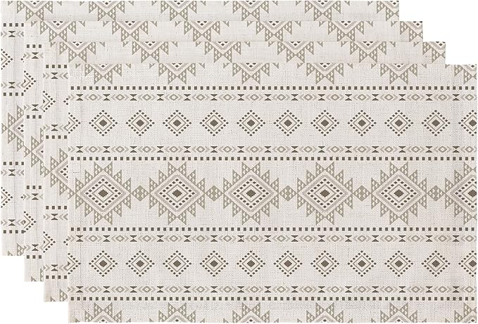 LilyCat Linen Fabric Geometric Stripes Placemats, Durable Boho Dining Table Mats for Kitchen, Rustic Vintage Washable Place Mats Set of 4, 18’’× 12’’