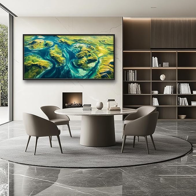 Lovira Natural Landscape Aerial View Large Wall Art Green River Island Spring Canvas Wall Decor Pictures Prints Painting Framed Modern Artwork for Living Room Bedroom Bathroom Kitchen Office 30"x60"