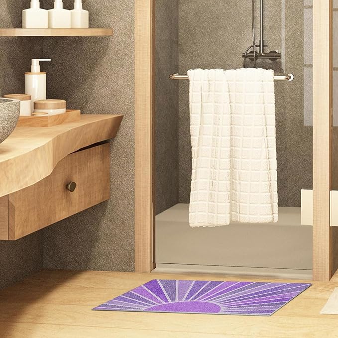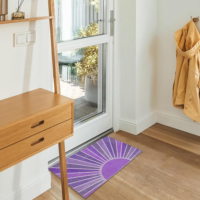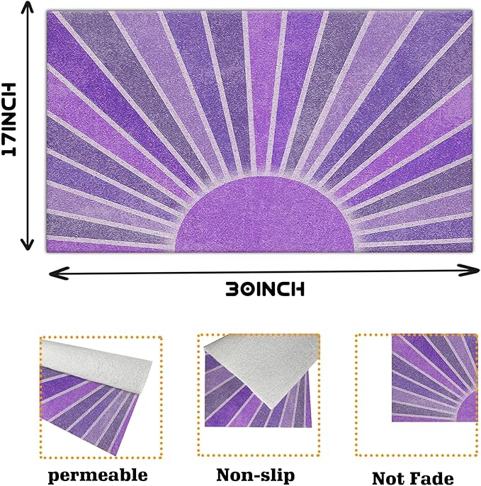 Nogrit Boho Door Mat, Retro Boho Purple Sun Sunshine Doormat Bathmat for Indoor Outdoor Entrance, Mid Century Modern Abstract Welcome Mats for Front Door Outside Porch Entryway, 17x30 Inches