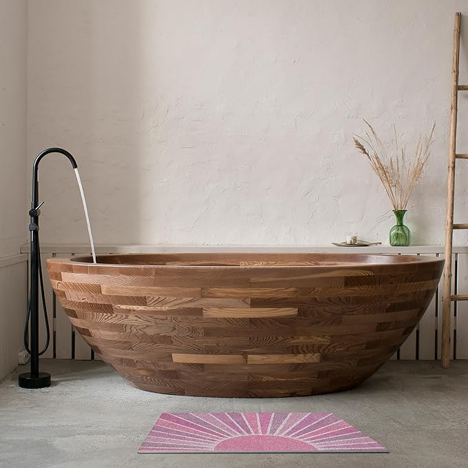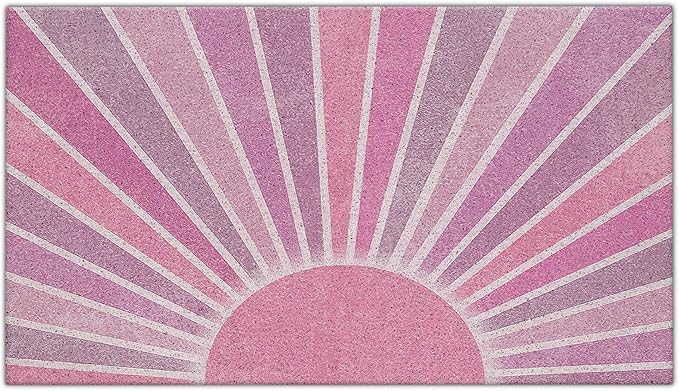 Nogrit Boho Door Mat, Retro Boho Pink Sun Sunshine Doormat Bathmat for Indoor Outdoor Entrance, Mid Century Modern Abstract Welcome Mats for Front Door Outside Porch Entryway, 17x30 Inches