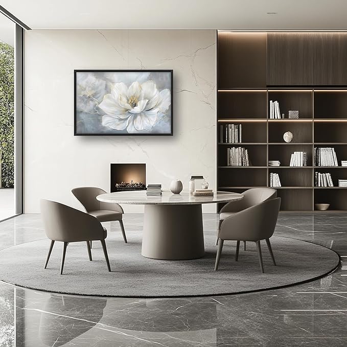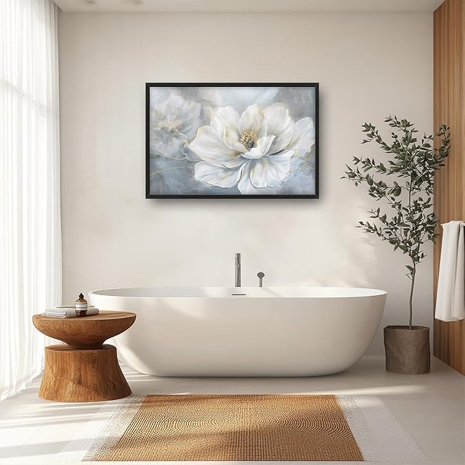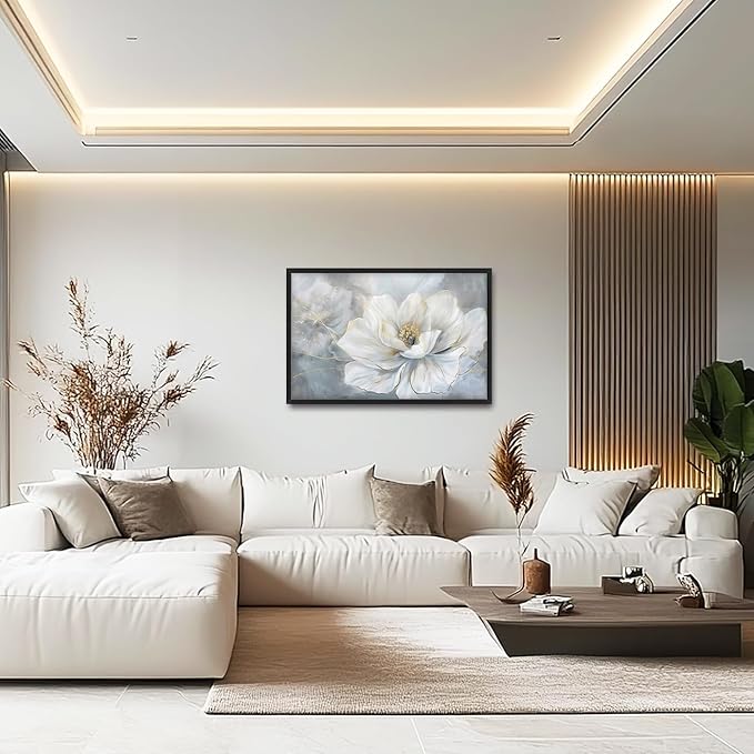 Lovira White Flower Large Wall Art Floral Canvas Wall Decor Pictures Prints Painting Framed Modern Artwork for Living Room Bedroom Bathroom Kitchen Office 24"x36"