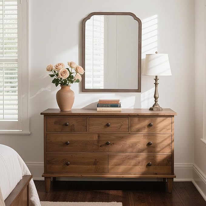 - Unique design & Decorative Mirror: The wall mirror with decorative solid wood frame, ingenious craftsmanship, can be matched with a variety of decorative styles to perfectly fit your home. Visually expand the space, increase the light, enhance the beauty of any room in the home. Fit bathroom, bedroom, living room, entryway, etc.