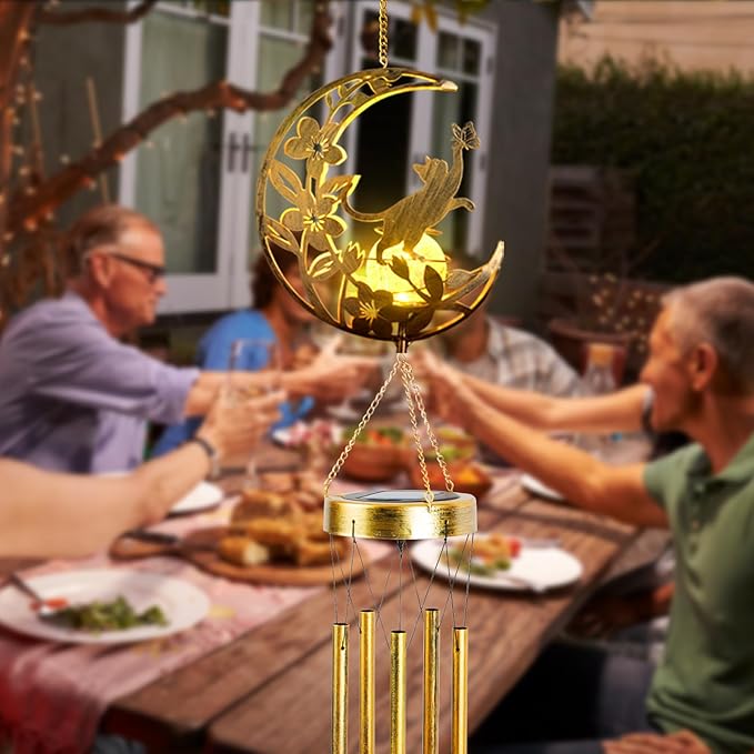 - đŸEnchanting Cat DesignâăAdorn your outdoor space with our charming moon cat wind chime, featuring delicate cat silhouettes dancing beneath a crescent moon. Each handcrafted aluminum charm moves gracefully in the breeze, creating playful shadows and visual interest for gardens, patios, or cat-themed nurseries
