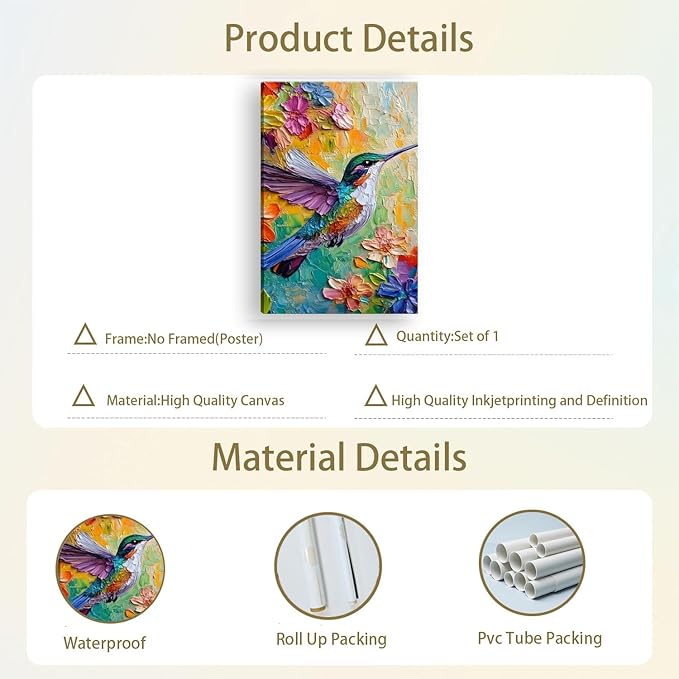 - 【Widely Used for Home Decoration】: This painting use warm colors and a springtime atmosphere to show the beauty of nature, it is perfect for decorating bedrooms, bathroom,bedrooms, living rooms or offices. In addition, it can be used as a gift for hummingbird lovers, and I am sure they will love it.