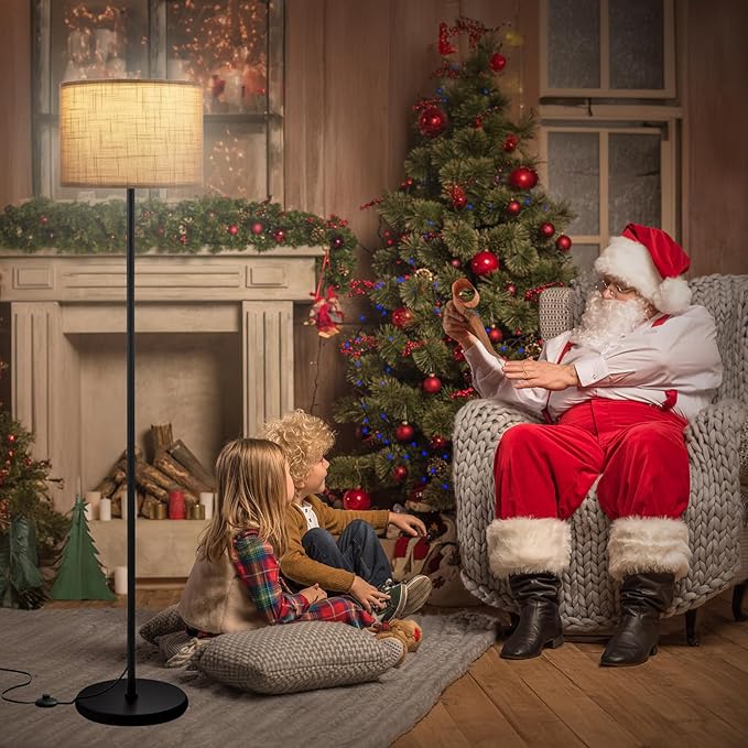 Ambimall 60'' Modern Floor Lamp with Shade, Tall Lamps for Living Room, Bedroom, Office, Dining Room, Linen Grey Shade with Black Pole(Without Bulb)
