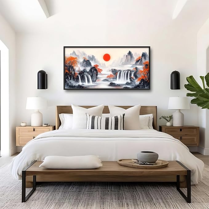 Lovira Japanese Mountain Landscape Large Wall Art Japan Canvas Wall Decor Pictures Prints Painting Framed Artwork for Living Room Bedroom Bathroom Kitchen Office 30"x60"
