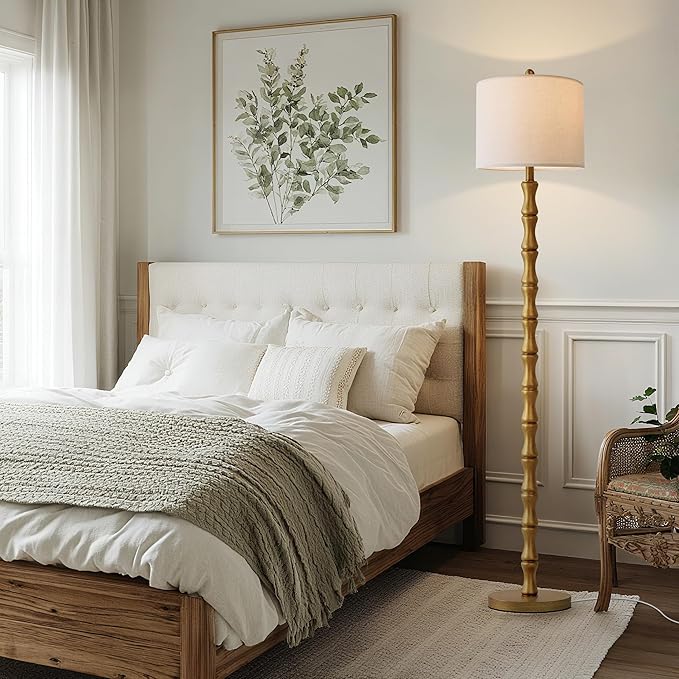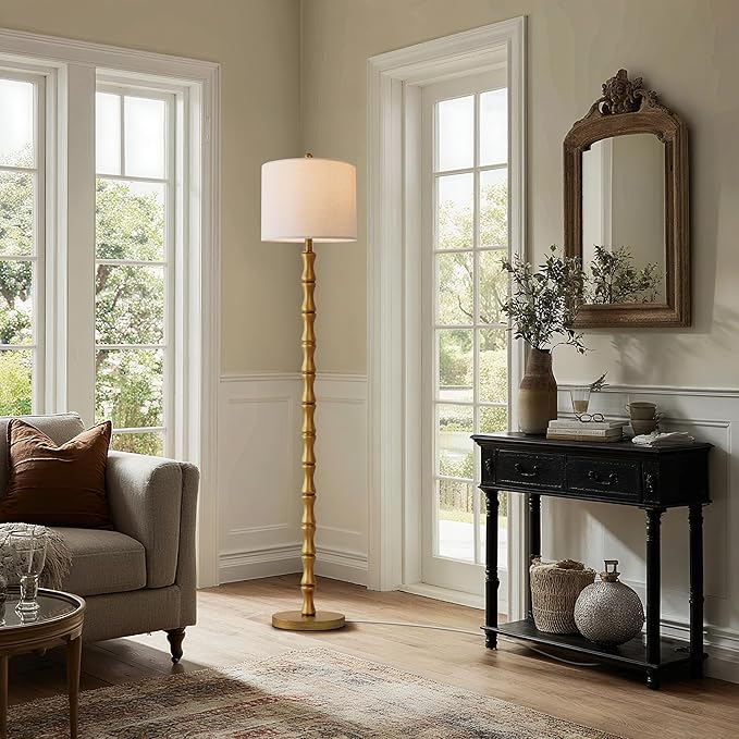 - 【Retro and elegant design】: Bring a warm ambiance to your home with this antique gold floor lamp, featuring unique knobby details that add an elegant sence to your decor. The linen shade diffuses light softly, creating a cozy and comfortable atmosphere.