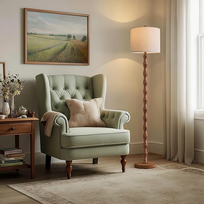 - 【Sturdy & Durable Resin Body】: Crafted from durable resin with a Light Walnut wood-look finish, this rustic tall floor lamp combines vintage charm with lasting quality. A weighted base provides enhanced stability, keeping the lamp secure and preventing accidental tipping.