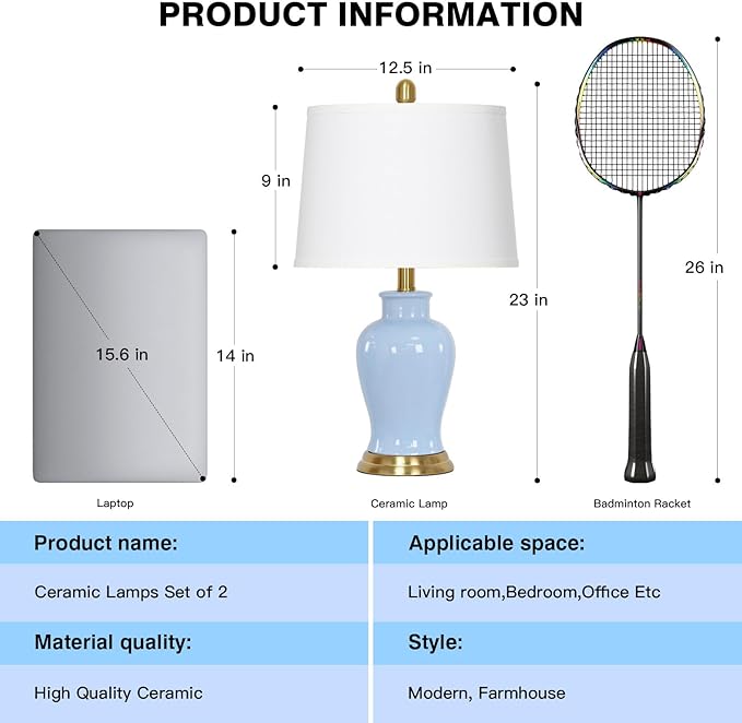 - 【Superior Quality 】The light blue ceramic table lamp is made of high-quality ceramic with smooth and shiny surface, durable, scratch-resistant and will not fade. The gold metal base adds a touch of luxury. Elegant coastal table lamps can enhance the overall beauty of your home decor. The modern design adds character and warmth to your house, creating a cozy ambiance