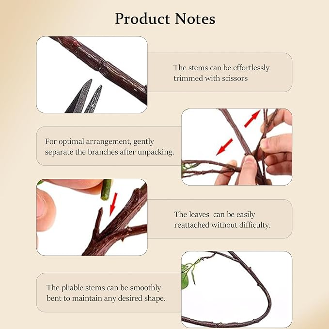 - WARM NOTE:Faux fall branches for vase may be deformed during handling,storage and transportation.After receiving the fall plant pots indoor,it is necessary to adjust the branches and trunks of the artificial fall plants to a perfect angle to achieve a perfect appearance.