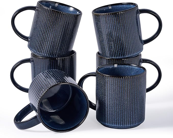 famiware Coffee Mug Set for 6, Star 16 oz Catering Mugs Cup Set with Handle for Coffee, Tea, Cocoa, Milk - Ceramic Stoneware Drinkware Set, Nebulas Blue