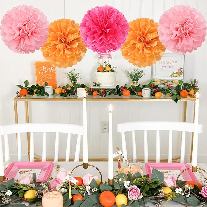 - MULTIPLE USES:Our paper decorations wonderful addition to any party.Pink and orange party decorations,thanksgiving,fall wedding,orange birthday,autumn baby shower,citrus party,groovy bridal shower,sunset party.