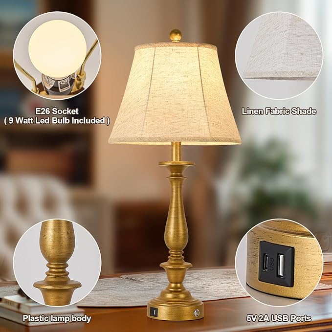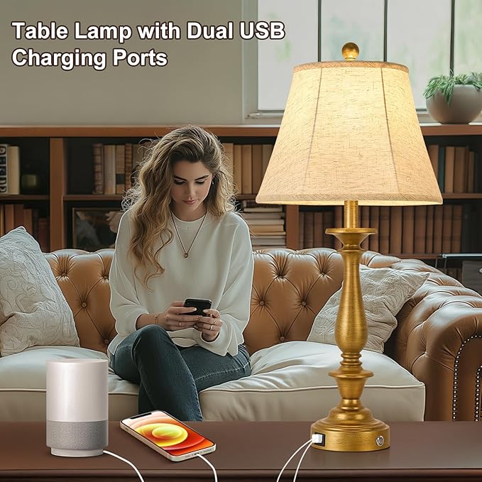 - CONVENIENT DUAL USB CHARGING PORTS: Our table lamp is equipped with two built-in 5V/2A USB charging ports, which can charge your mobile phones, tablets, humidifiers, Kindle readers, iPads, iPhones and other devices. No need to struggle to find USB charging ports and sockets every time, saving your time and energy. What's more, these charging ports will continue to work whether you turn the lamp on or off, bringing unlimited convenience to your life.