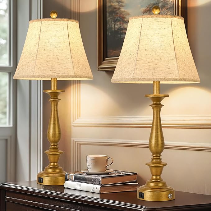 - CLASSIC VINTAGE DESIGN: Each table lamp is designed in a country farmhouse style with an antique finish, making the design more refined and elegant. The off-white tapered silk lampshade makes these beautiful vintage bedside lamps appear more high-end and luxurious. Perfectly integrated into modern, retro, medieval and other art decoration schemes.