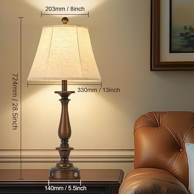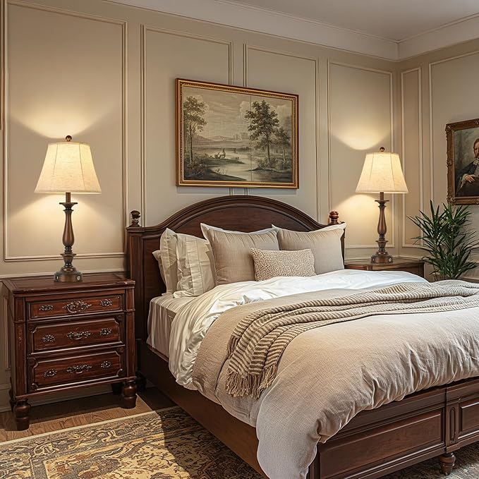 - CLASSIC VINTAGE DESIGN: Each table lamp is designed in a country farmhouse style with an antique finish, making the design more refined and elegant. The off-white tapered silk lampshade makes these beautiful vintage bedside lamps appear more high-end and luxurious. Perfectly integrated into modern, retro, medieval and other art decoration schemes.