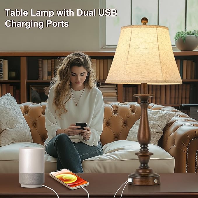 - CONVENIENT DUAL USB CHARGING PORTS: Our table lamp is equipped with two built-in 5V/2A USB charging ports, which can charge your mobile phones, tablets, humidifiers, Kindle readers, iPads, iPhones and other devices. No need to struggle to find USB charging ports and sockets every time, saving your time and energy. What's more, these charging ports will continue to work whether you turn the lamp on or off, bringing unlimited convenience to your life.