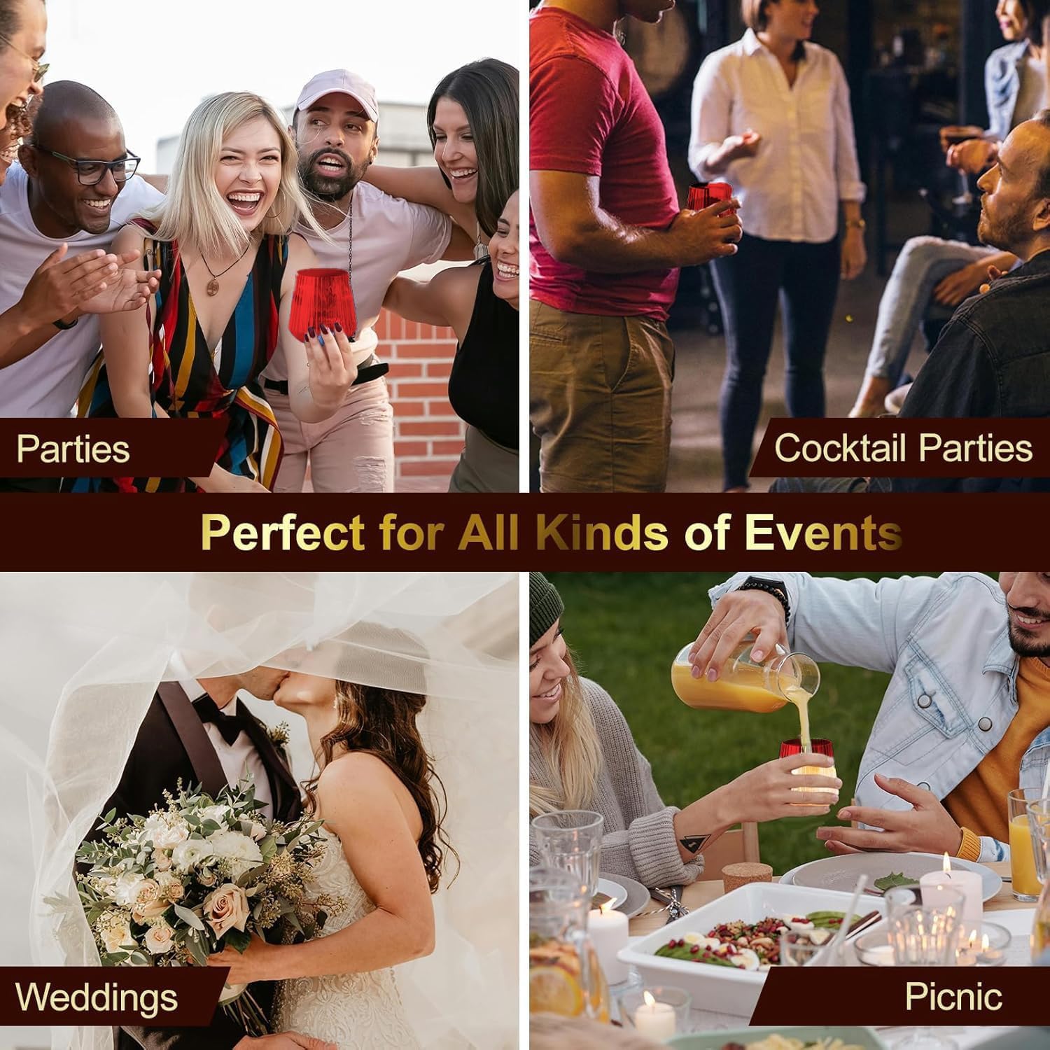 - 【Perfect for All Celebrations】The plastic wine cup can match any color beverage, perfect for wine, champagne, juice, cocktail, and various mixed drinks. Perfect for indoor and outdoor functions, catering, corporate events, barbecues, birthday parties, weddings, picnics, and more!
